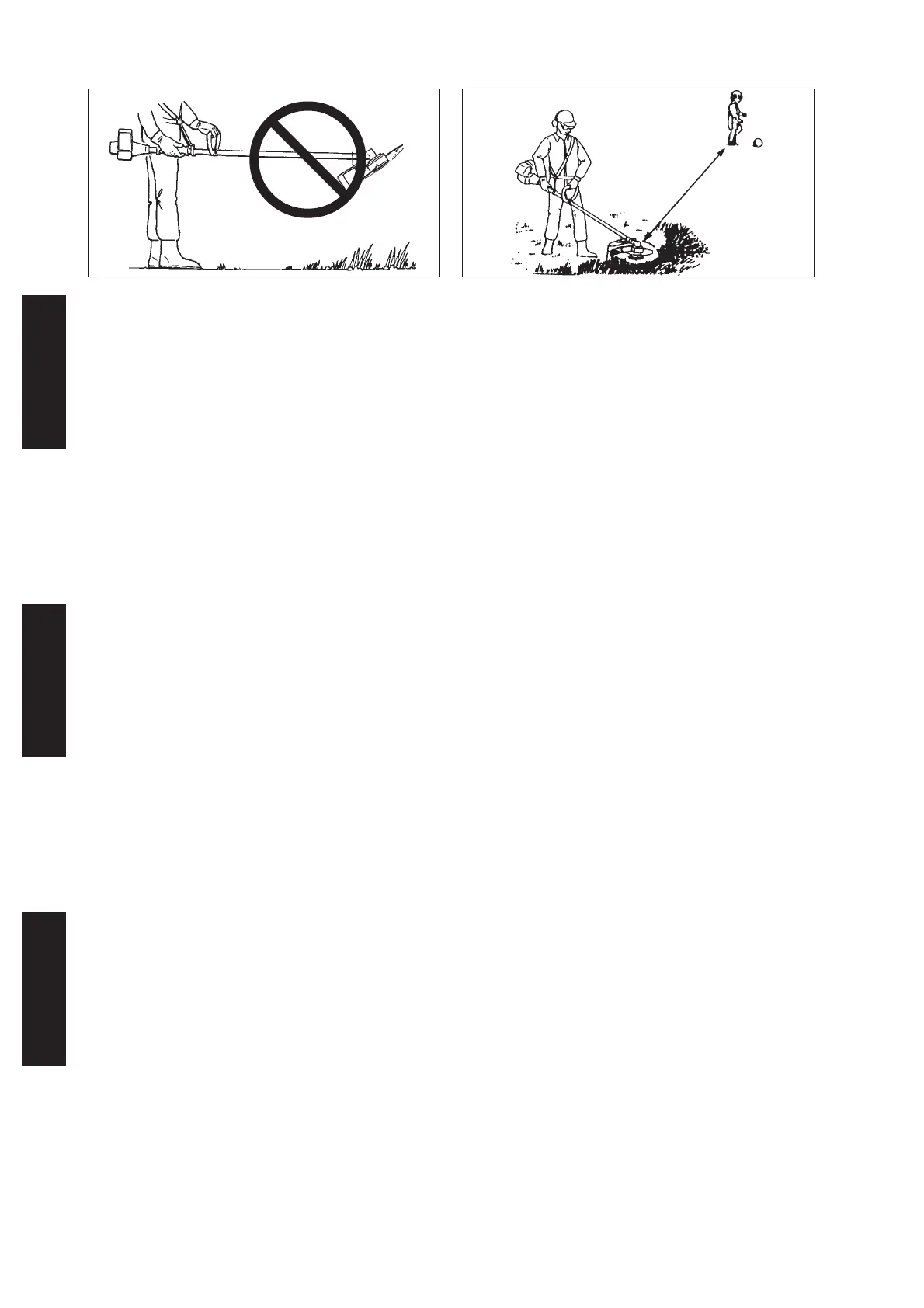 workers outside 15 m radius for brushcutters/grasstrimmers.