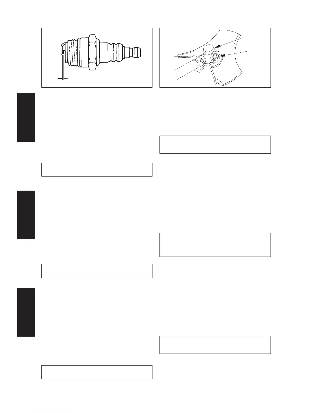 • Check plug gap. Correct gap is 0.6 to 0.7 mm.