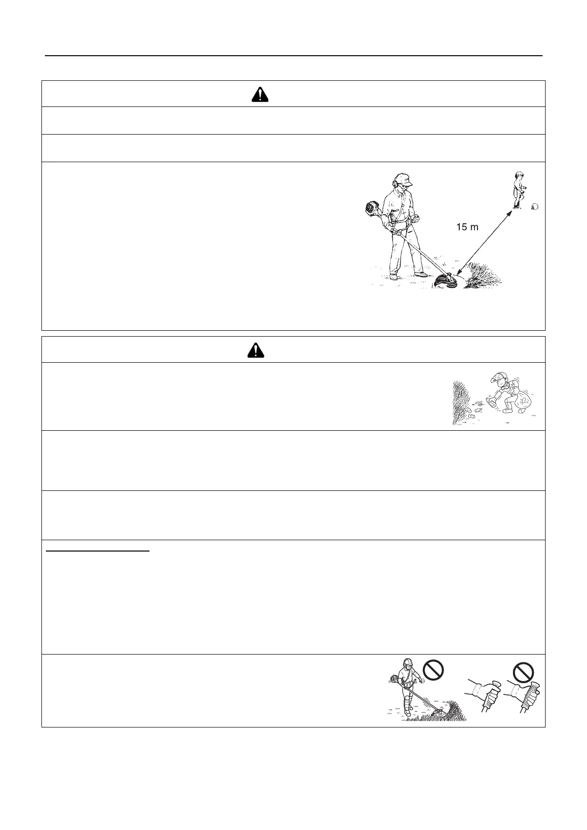 Any objects that ricochet off the cutting attachment could cause an accident or serious injury.