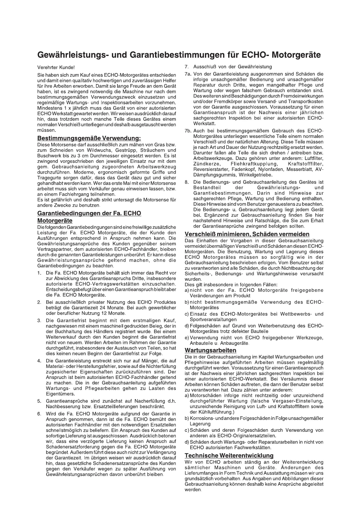 Gewährleistungs- und Garantiebesti mmungen für ECHO- Motorgeräte