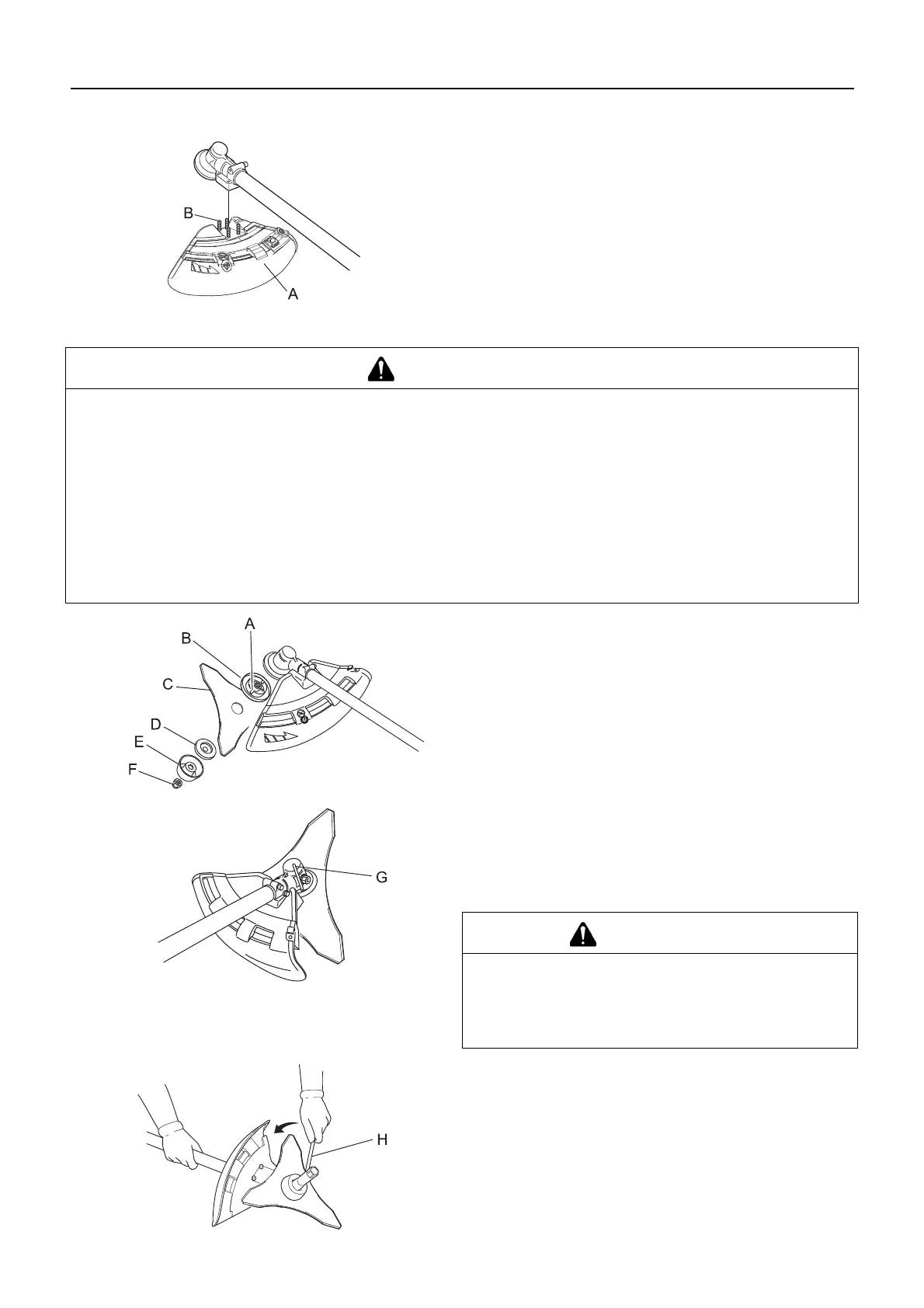 1. Ispezionare le lame (C) prima del montaggio. Verificare che