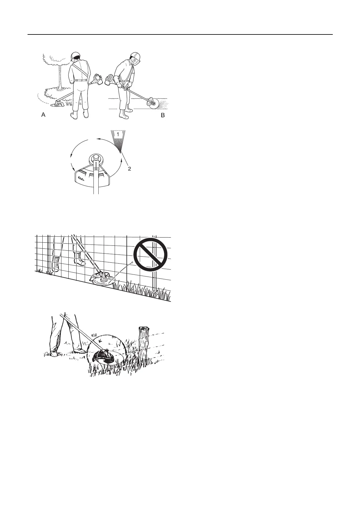 Non spingere il filo tra erbacce robuste, alberi o reti metalliche.