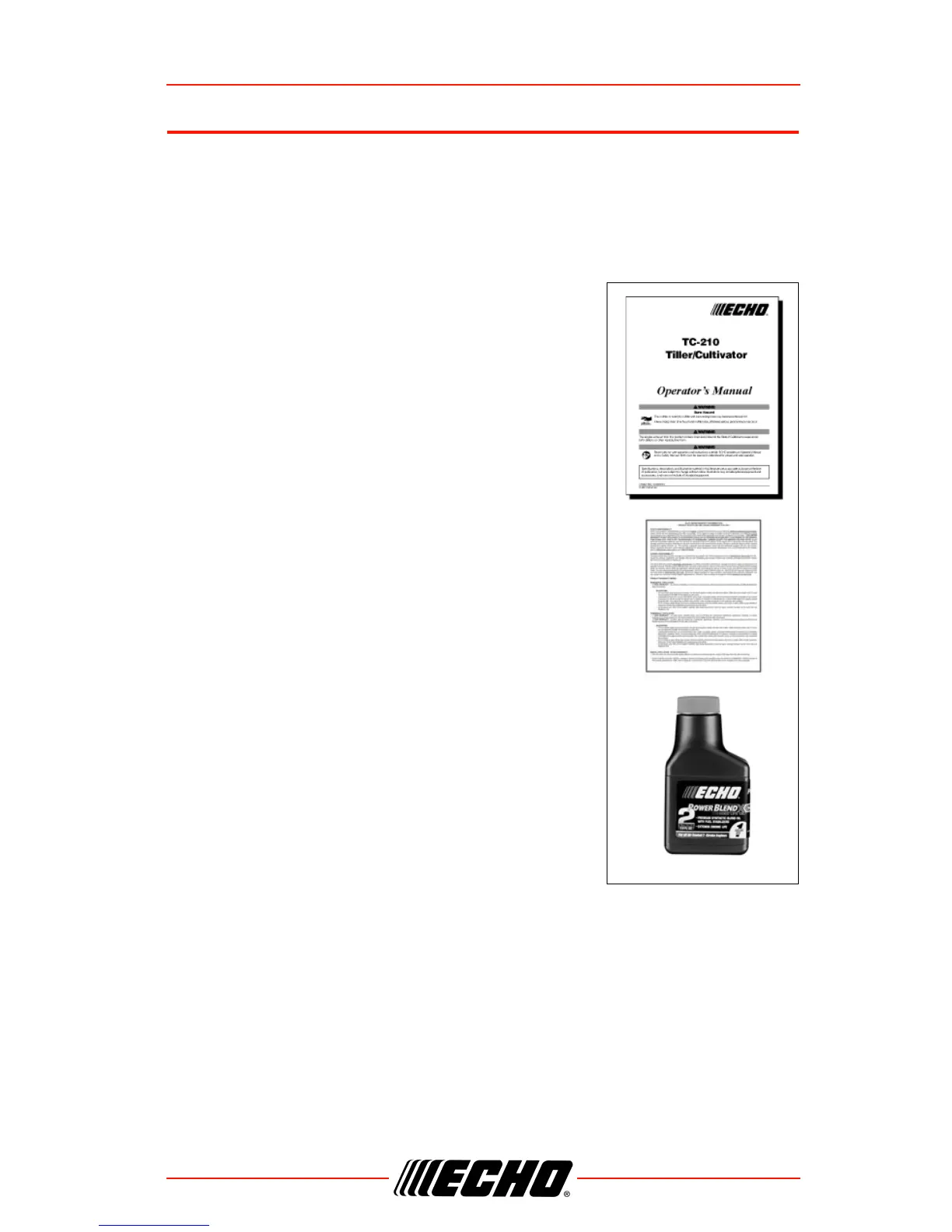 ECHO Dealer of damaged or missing parts. Use the contents list to check for