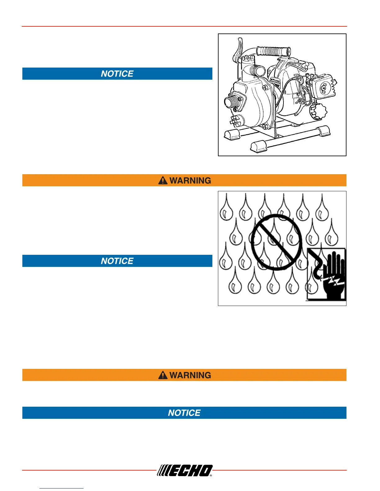 ◆ Do not operate pump in flooded areas near power lines