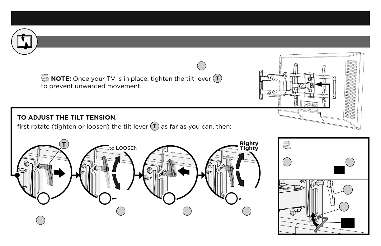 NOTE: Once your TV is in place, tighten the tilt lever