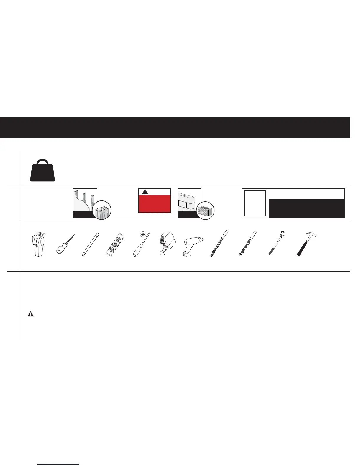 ● Ce produit est conçu pour une utilisation sur des montants en bois, des murs en béton plein et en bloc de béton - Ne l'installez PAS seul sur une cloison sèche.
