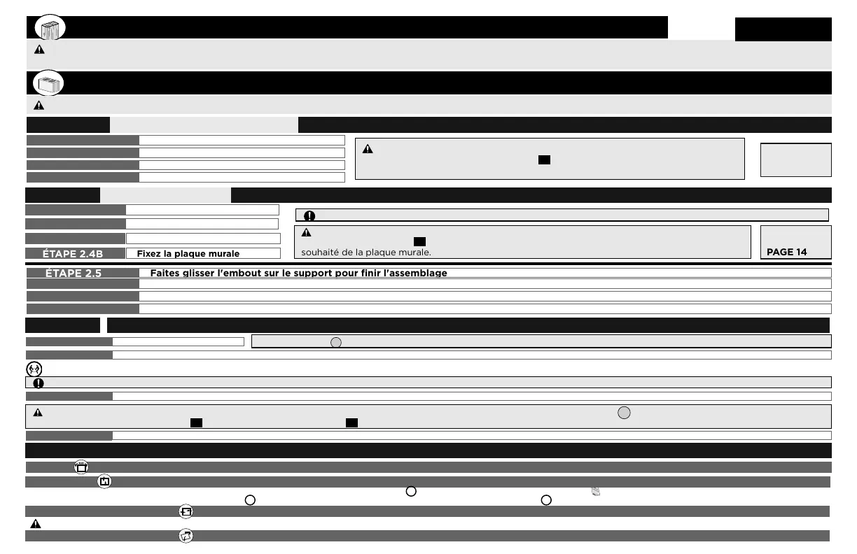 ATTENTION : Évitez les risques de blessures corporelles ou de dommages matériels! Installez la plaque murale directement sur la surface en béton (aucun revêtement de surface).