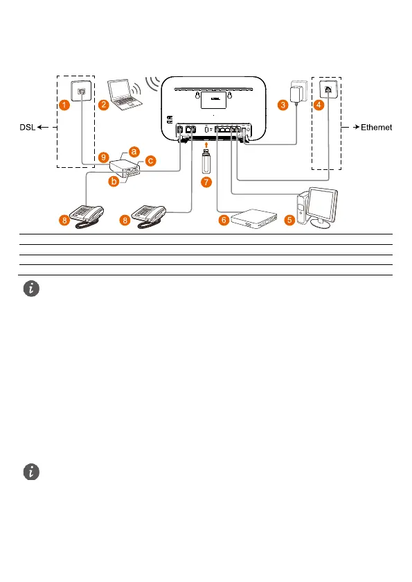 Only DSL upstream transmission or Ethernet upstream transmission can be used at a time.
