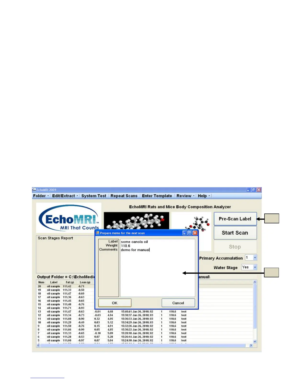 NOTE: This is the only way to label and place weight with the scan. After scan is complete one cannot edit