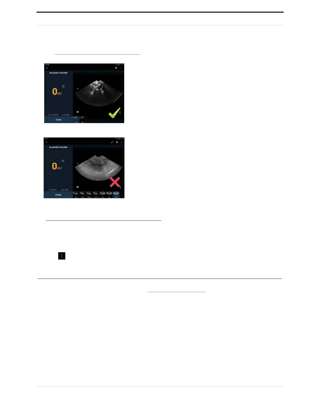 • A true low volume bladder scan will present with a clear pubic bone indicator and a clear visualization of a