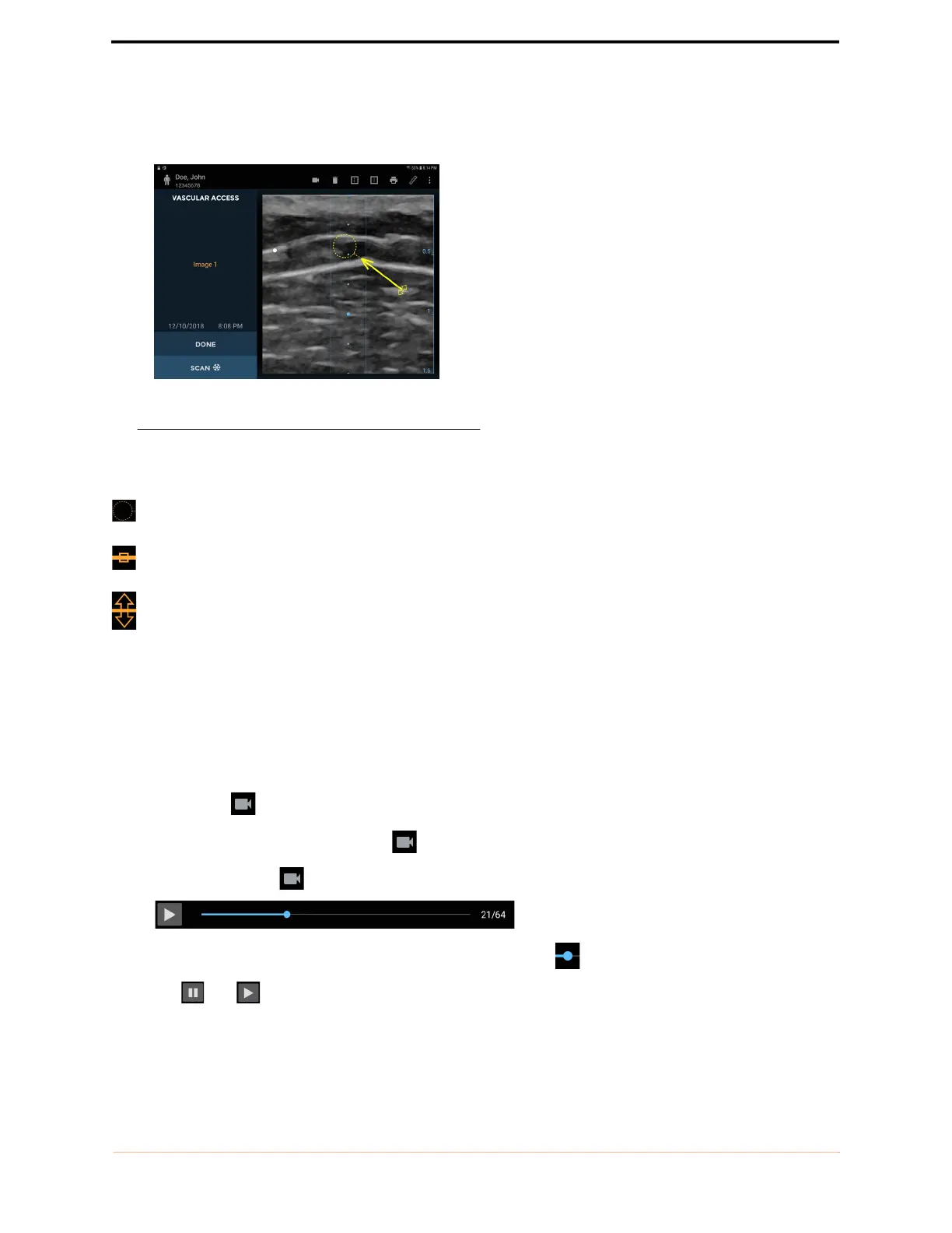 Tap the Movie icon to save up to 16 seconds of the vascular access scan as a movie clip.
