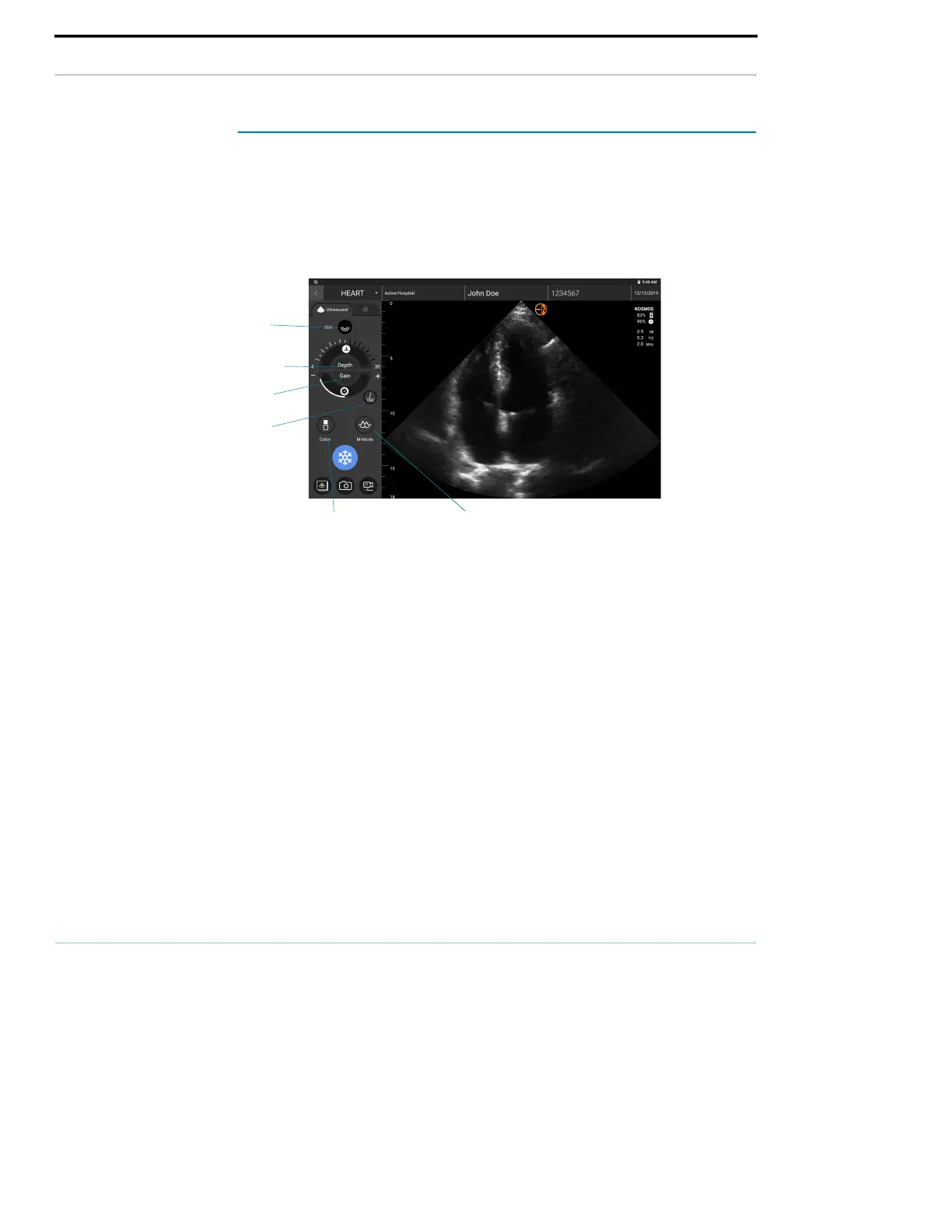 B-mode is the system’s default imaging mode. The system displays echoes in two