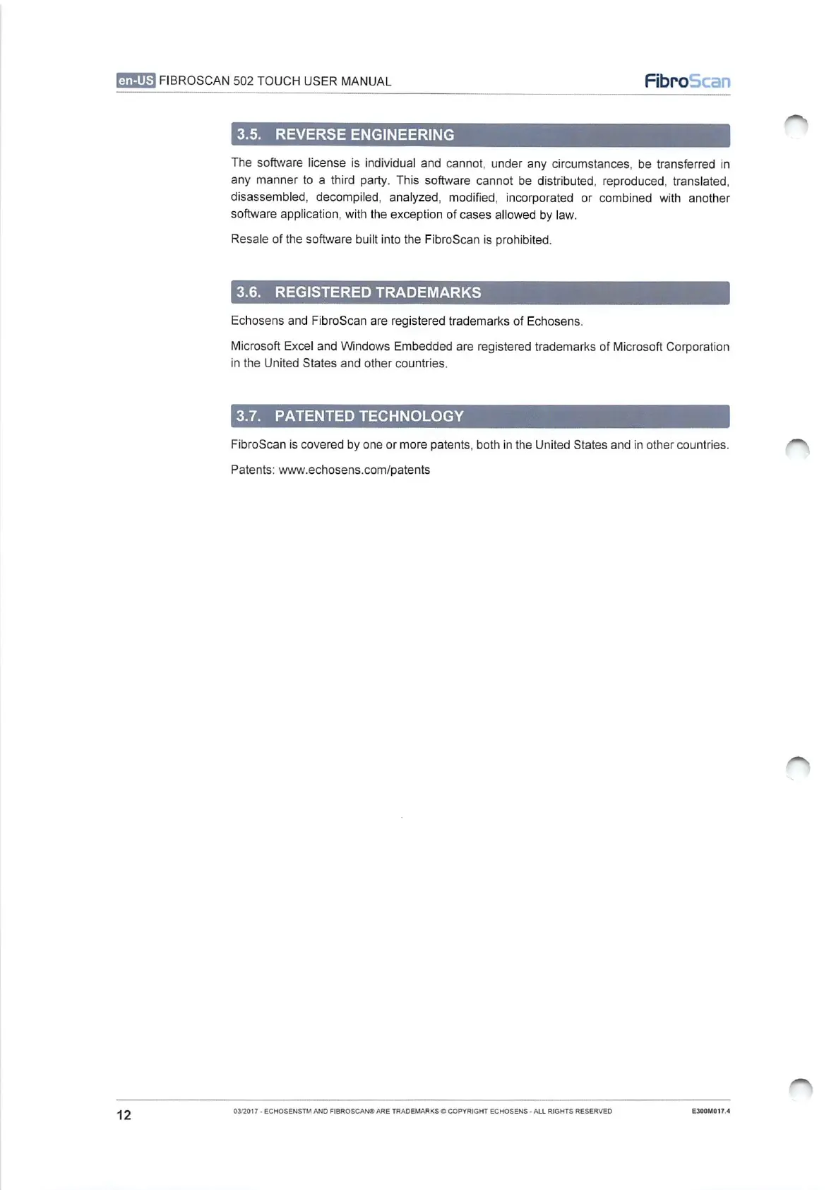 echosens FibroScan 502 touch - Reverse Engineering; Registered Trademark; Patented Technology
