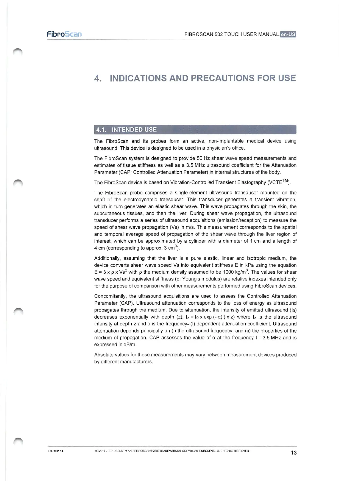 echosens FibroScan 502 touch - Indications and Precautions for Use; Intended Use