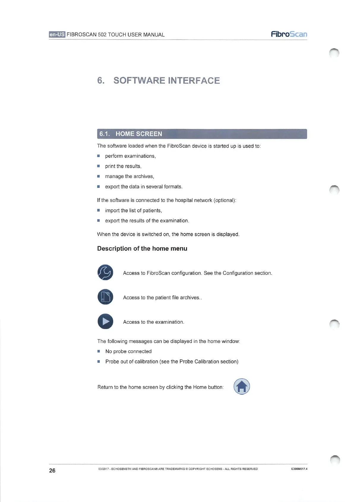 echosens FibroScan 502 touch - Software Interface; Home Screen