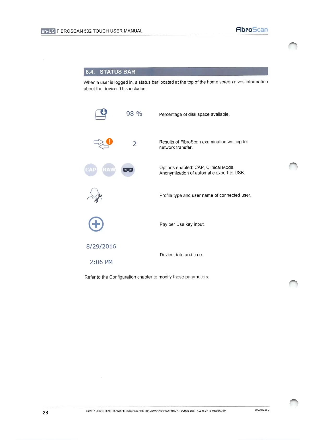 echosens FibroScan 502 touch - Status Bar