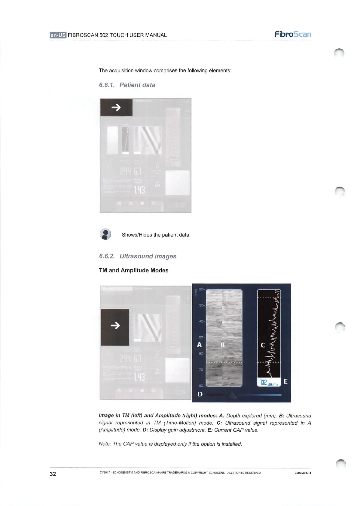 echosens FibroScan 502 touch - Patient Data; Ultrasound Images