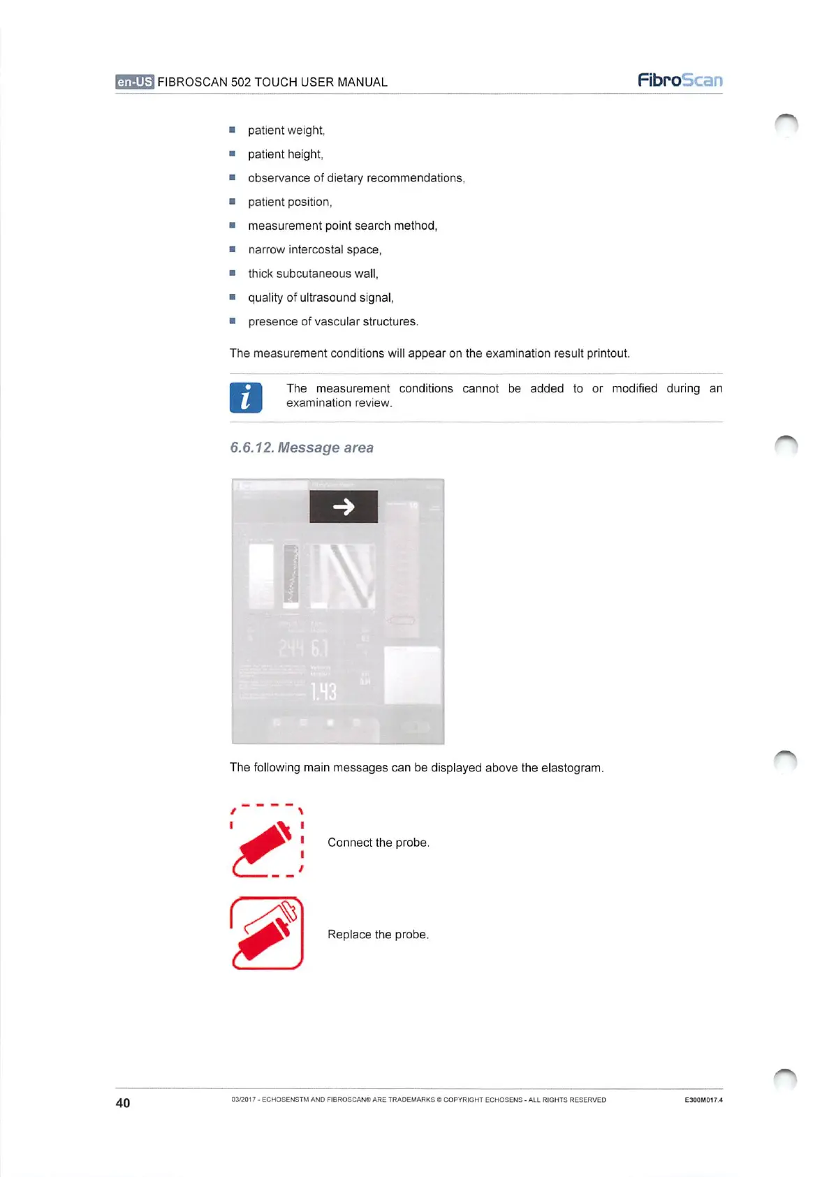 echosens FibroScan 502 touch - Message Area