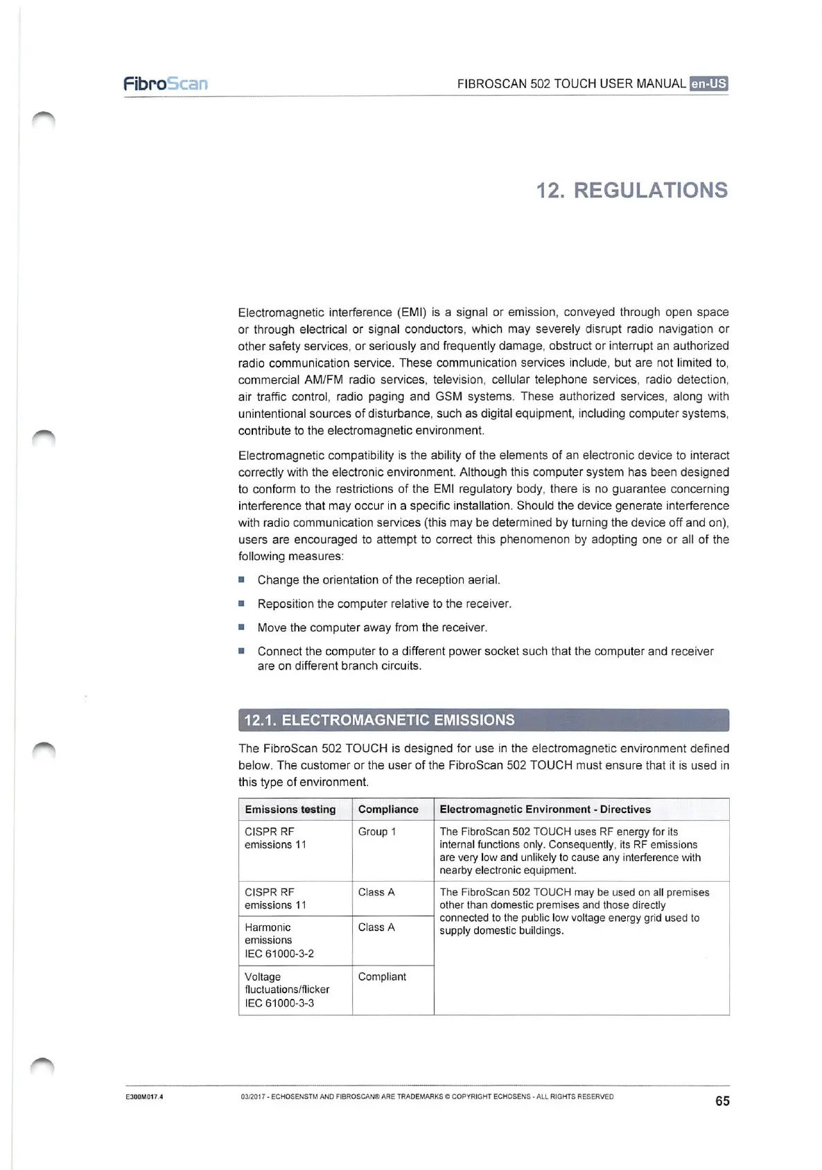 echosens FibroScan 502 touch - Regulations; Electromagnetic Emissions