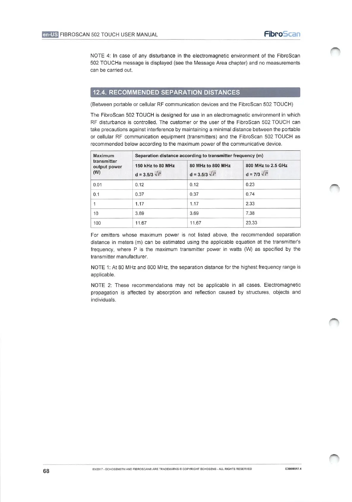 echosens FibroScan 502 touch - Recommended Separation Distances