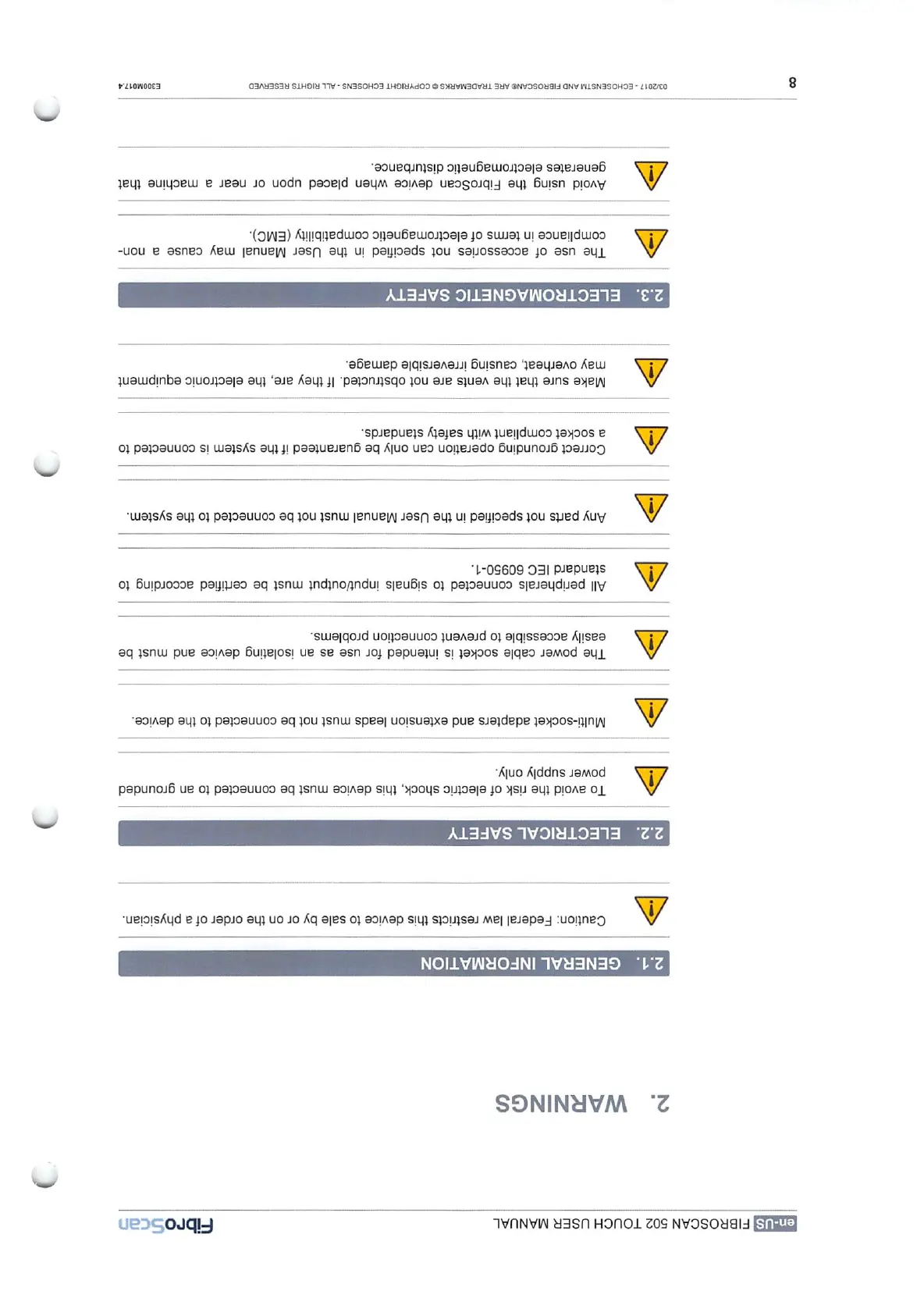 echosens FibroScan 502 touch - Warnings; Electrical Safety; Electromagnetic Safety