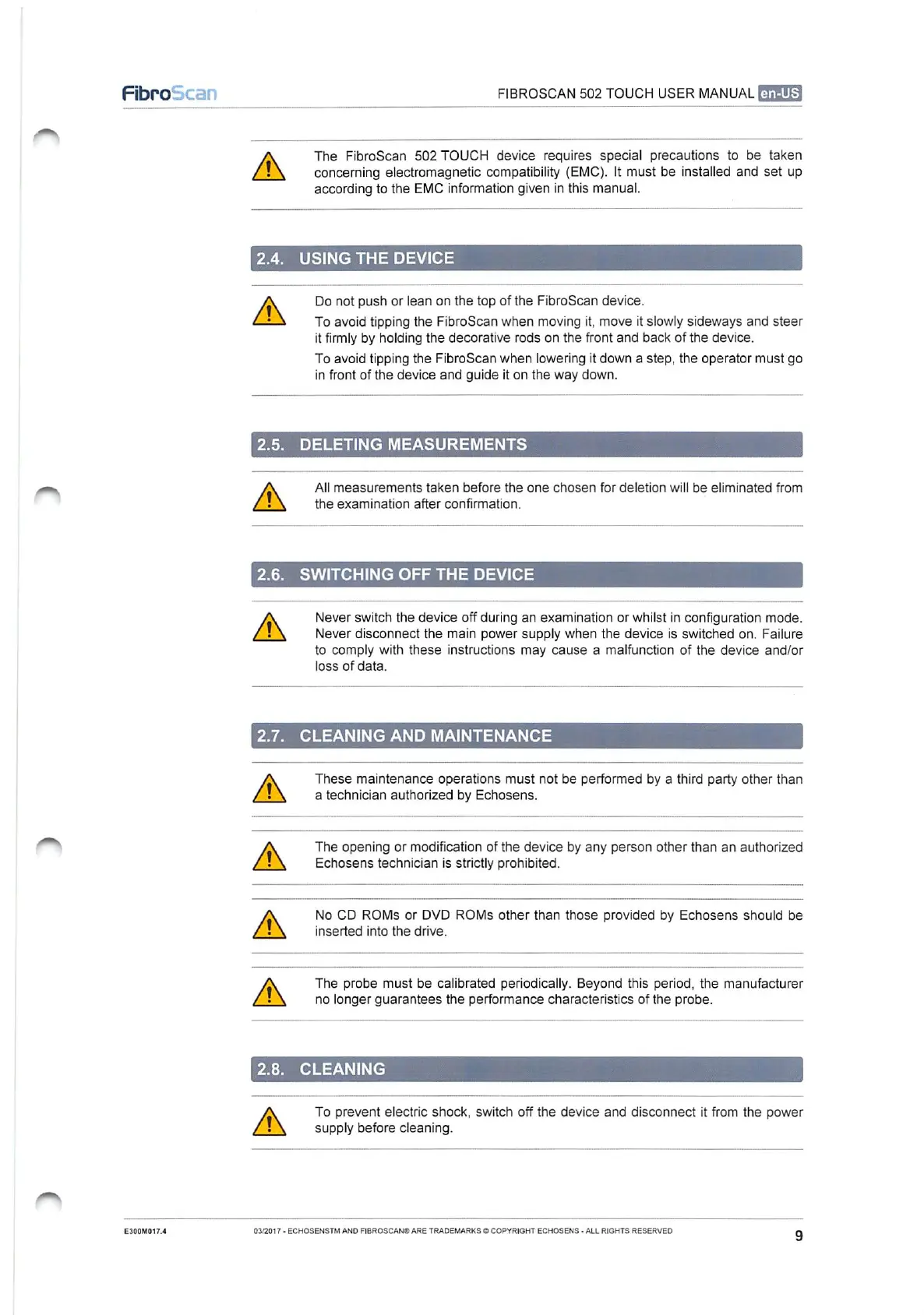 echosens FibroScan 502 touch - Using the Device; Deleting Measurements; Switching off the Device; Cleaning and Maintenance