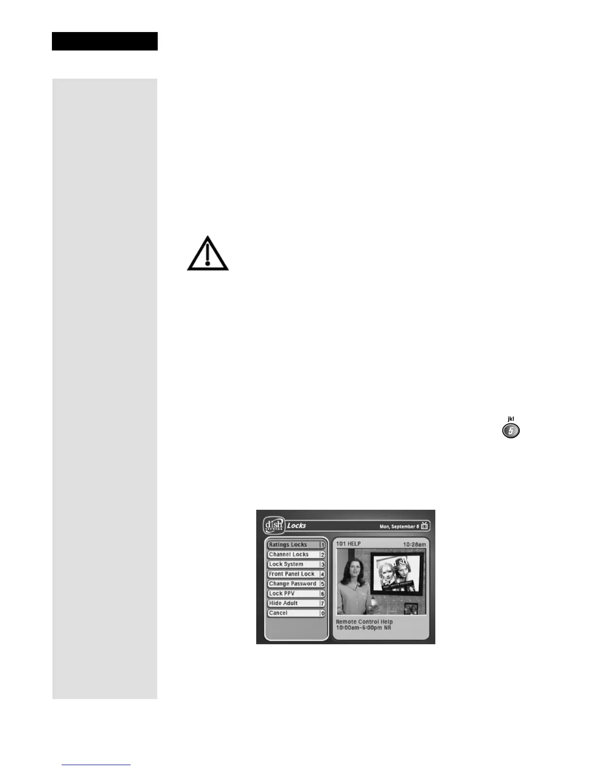 • If you try to access a locked item or open the Locks menu, the receiver