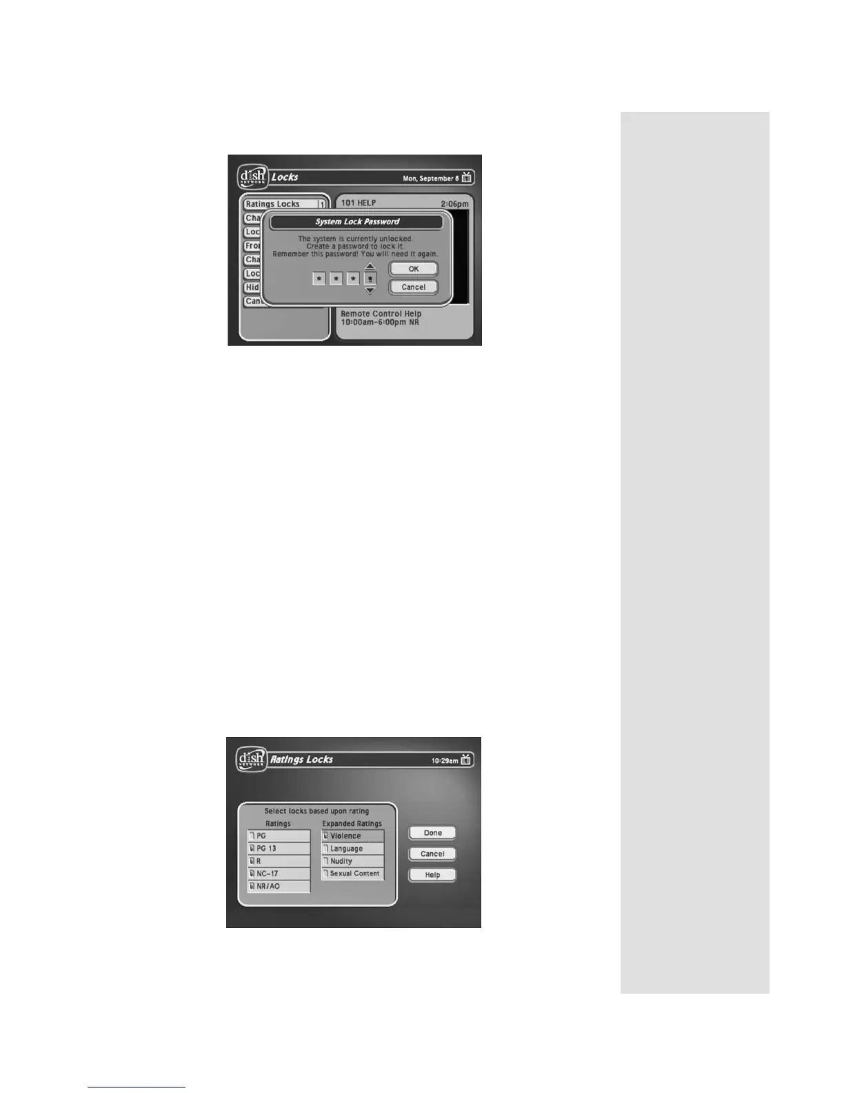 You can lock programs by rating. These locks apply to Pay-Per-View and DISH