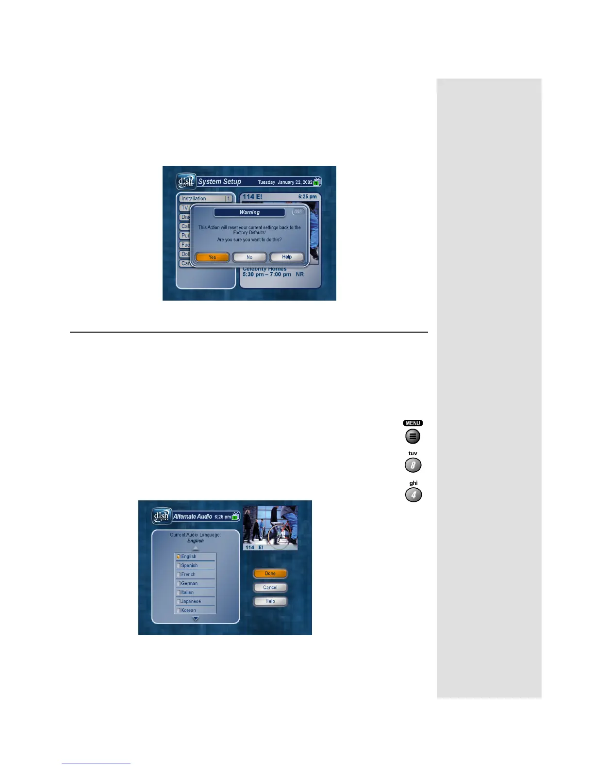Done option to save your language choice. The receiver displays