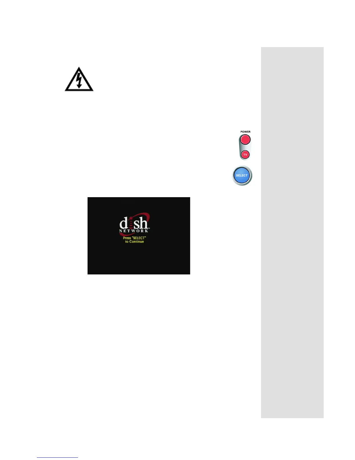 control or front panel POWER buttons, you will see the DISH