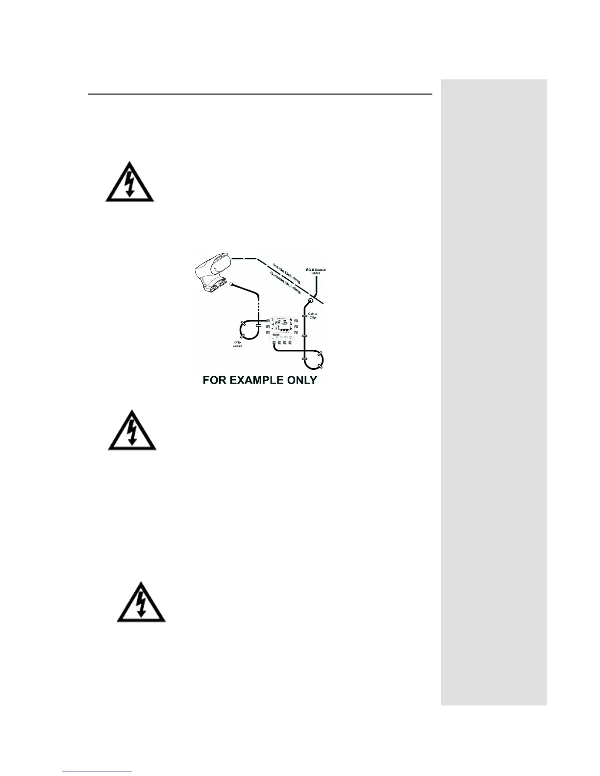 block or switch to the satellite receiver(s). Do not kink or pinch any cable.