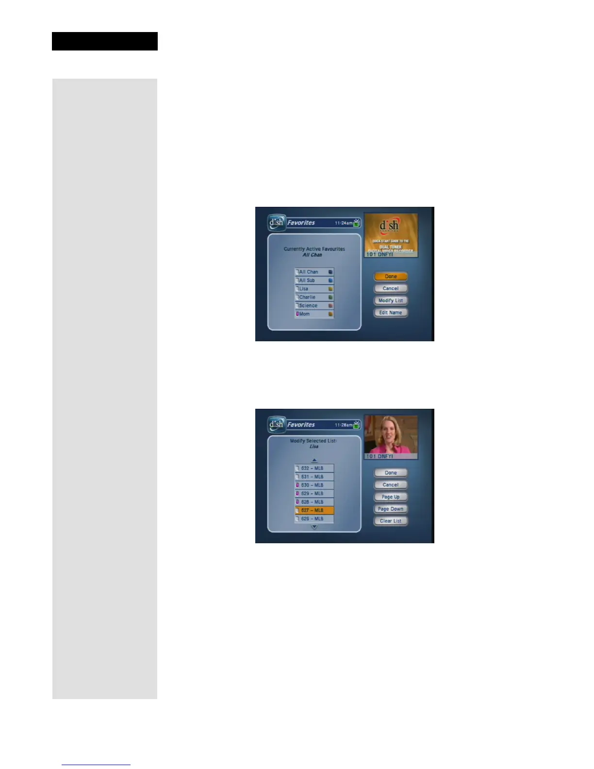 • When you put the receiver in Single Mode, the Favorites Lists for TV2 are