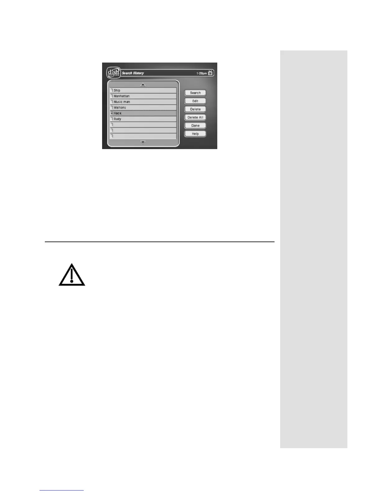 Search History screen, you have the following options: