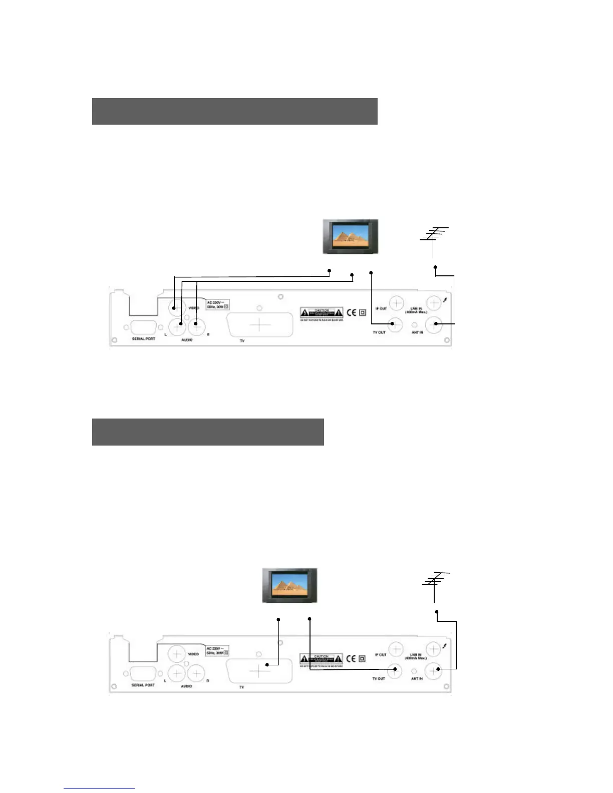 1. Connect the Off-air TV antenna or cable if available to the ANT IN socket of the EchoStar DSB-700 FTA.
