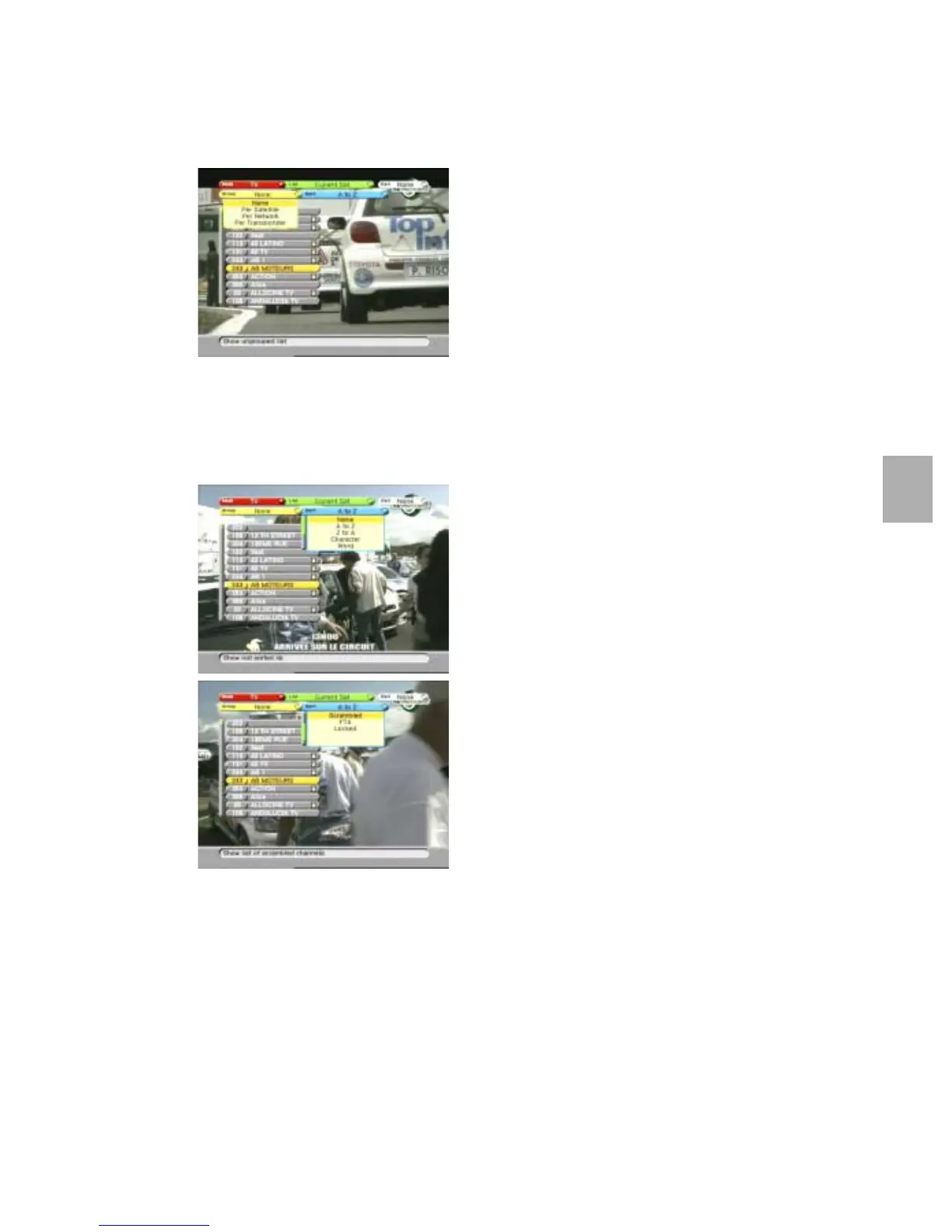 Shows a list of Free-To-Air channels only.