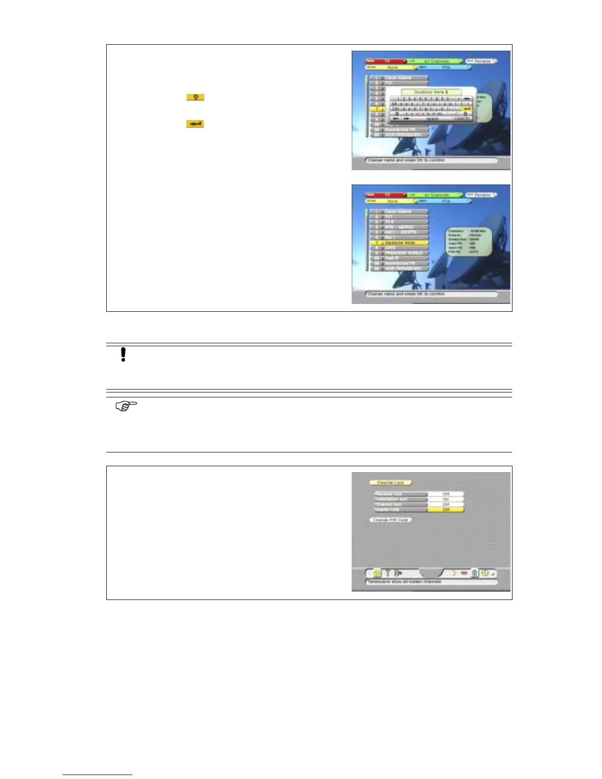 After you have set a hide onto a channel, the installation and the EDIT menu are
