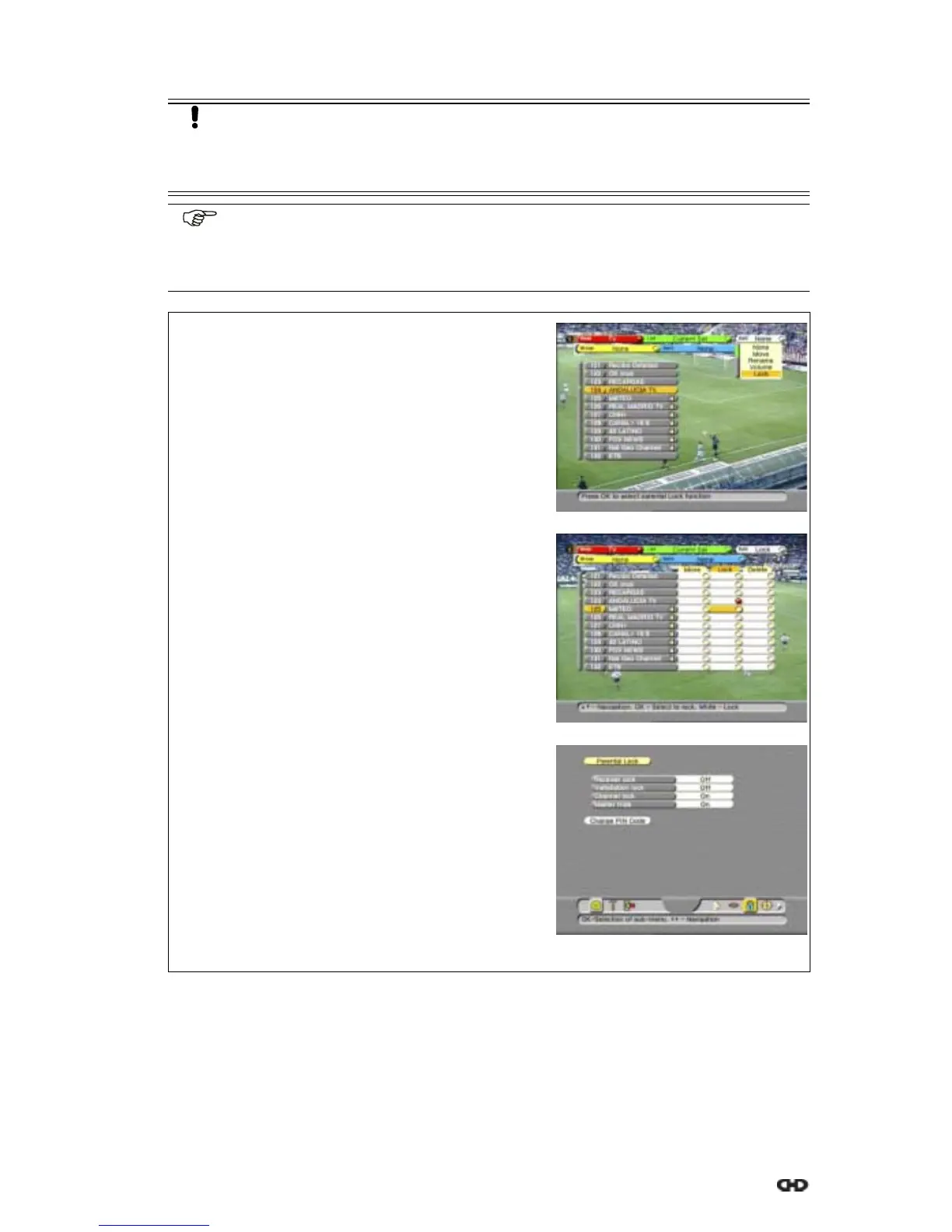 After you have set a lock onto a channel, the installation and the EDIT menu are
