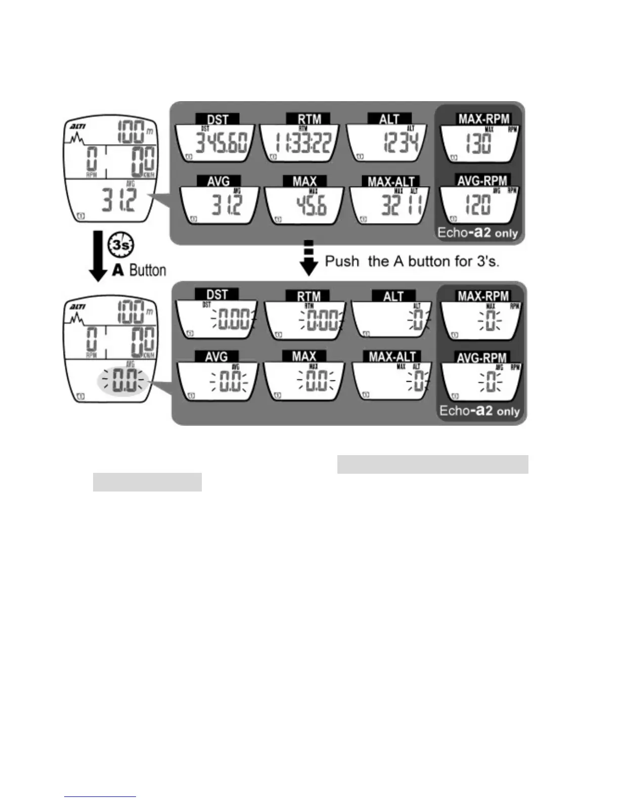 1. Press and hold the A button for 3 seconds to reset data of DST,