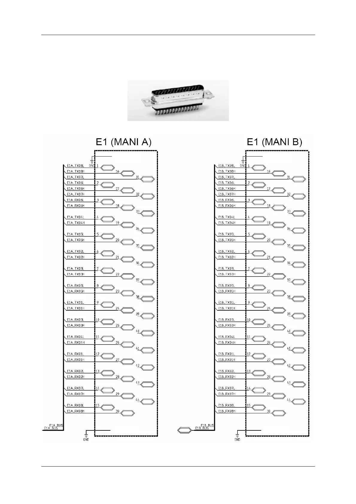 ECI Hi-FOCuS 960E - E1 a and B; Figure 38. E1 a and B Connector; Figure 39. E1 a and B Pinout