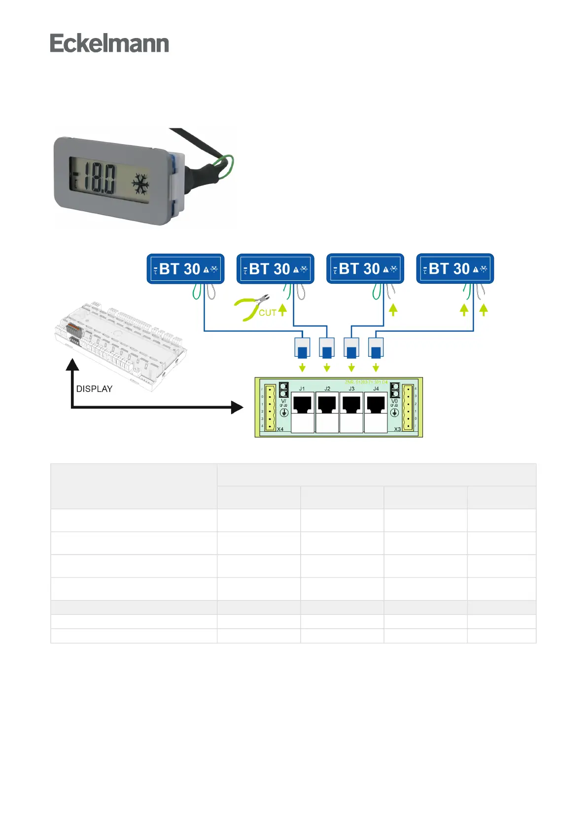 Up to 4 BT 30 temperature displays can be connected to the case controller.