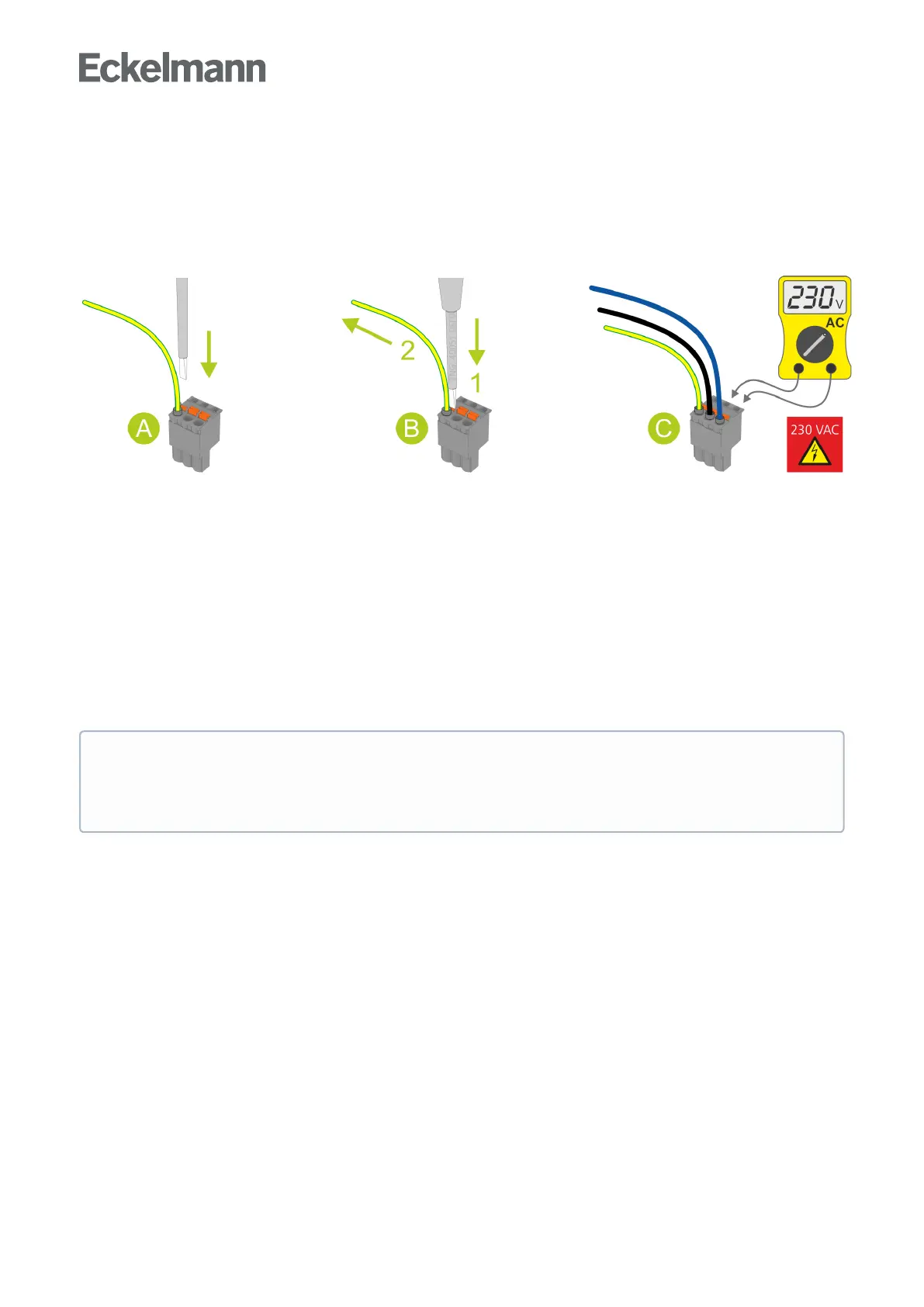 The wires are disconnected using a screwdriver (max. 3.5 mm width) via the orange push button at the terminal