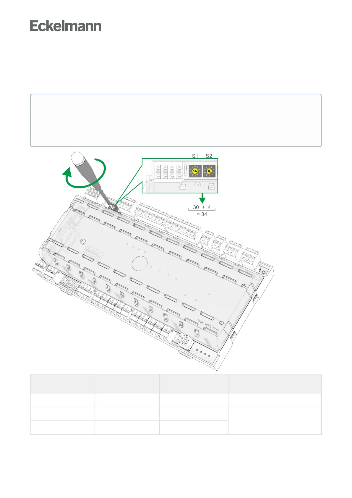Setting of the CAN bus address (Kn.nnn = 1..99) is performed using the two decade switches S1 and S2. An