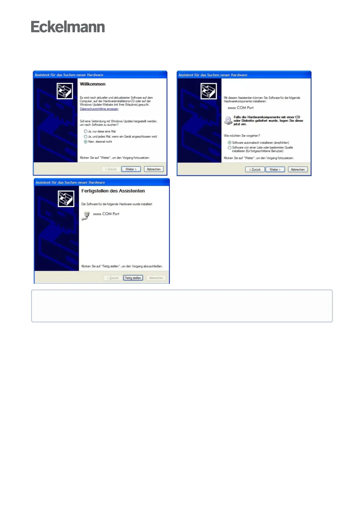 During the first connection of the controller to the PC, the "Scan for new hardware wizard" opens. Please follow
