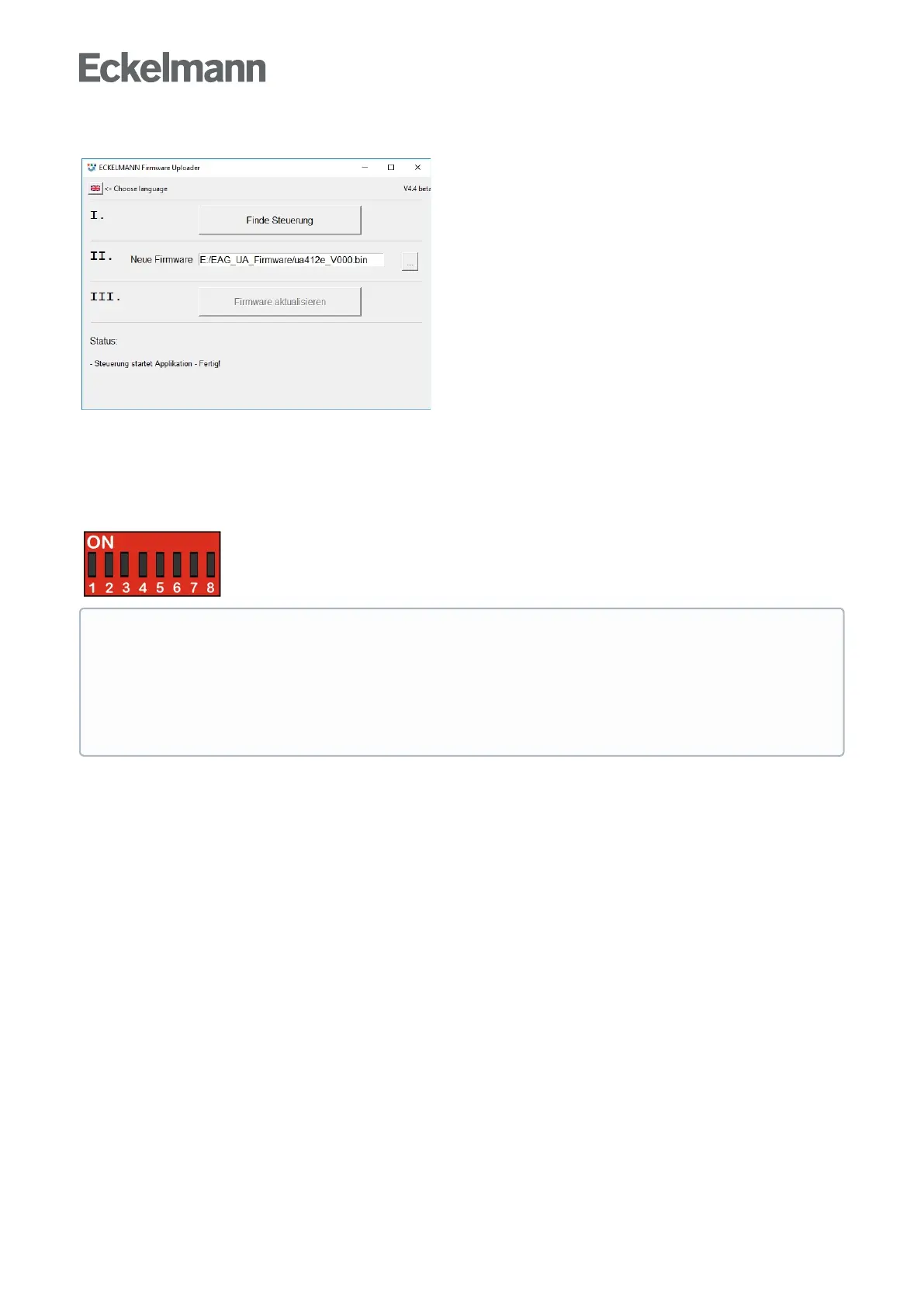 After the firmware update has been performed, all coding switches 1..8 of the DIP switch S3 must be returned