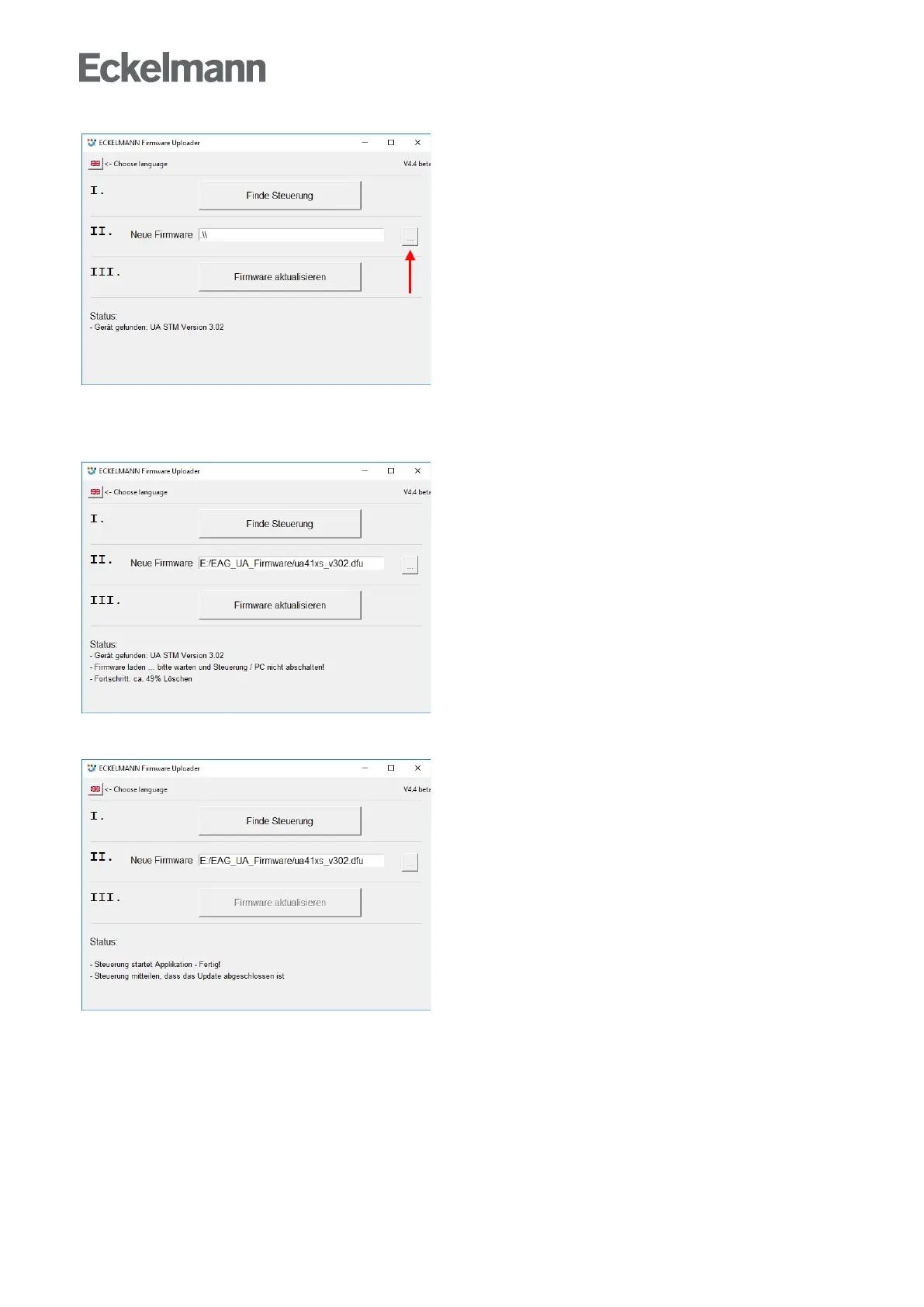 A notification is displayed in the status field if the controller has been found. Then select the current firmware