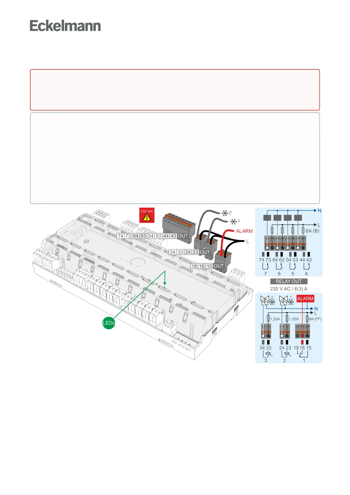 connection it must checked that the 230 V AC relay outputs are off load! Low voltage and safety extra-
