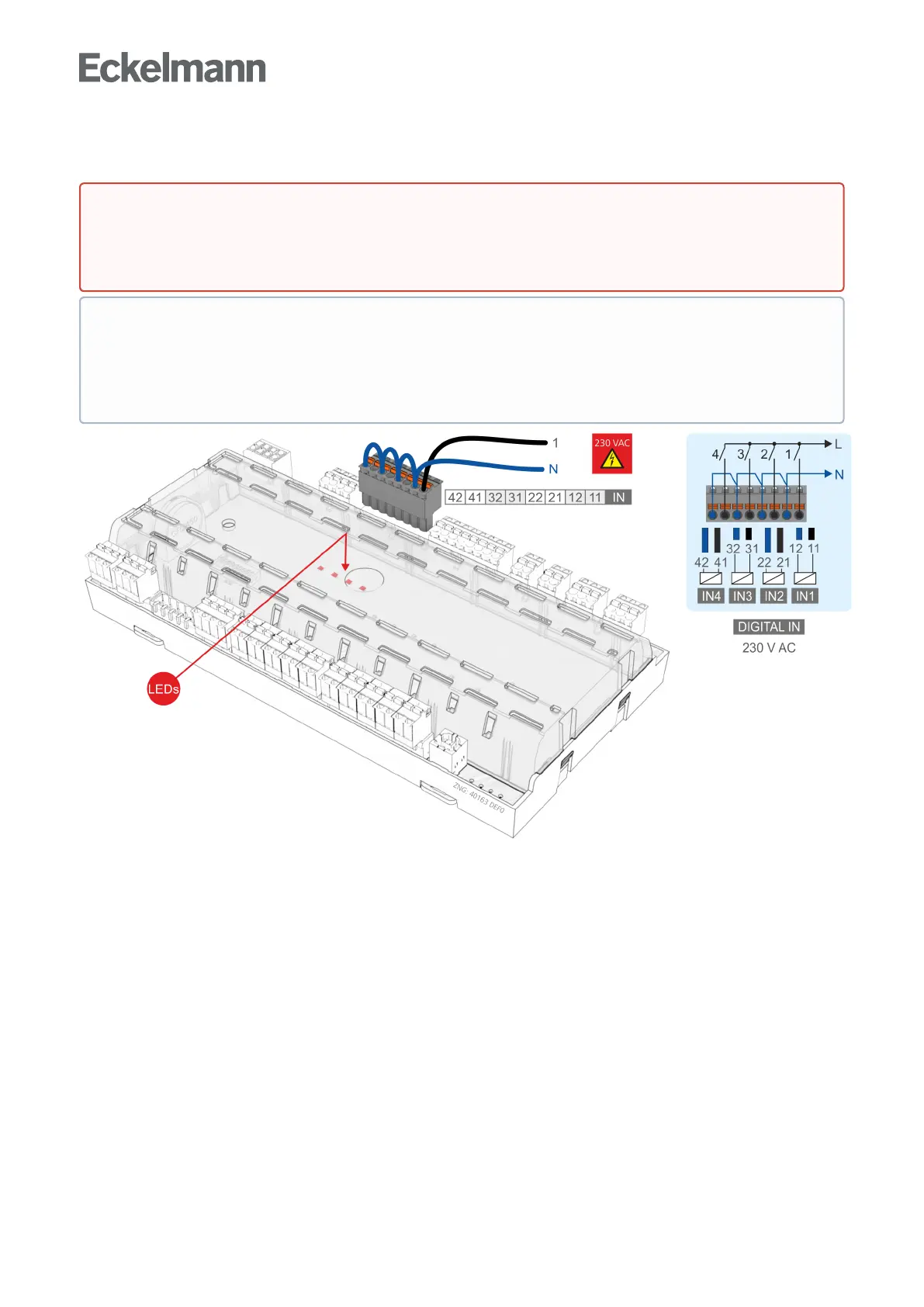 as a 230 V signal is applied to one of these inputs. For further details see the appropriate chapter in