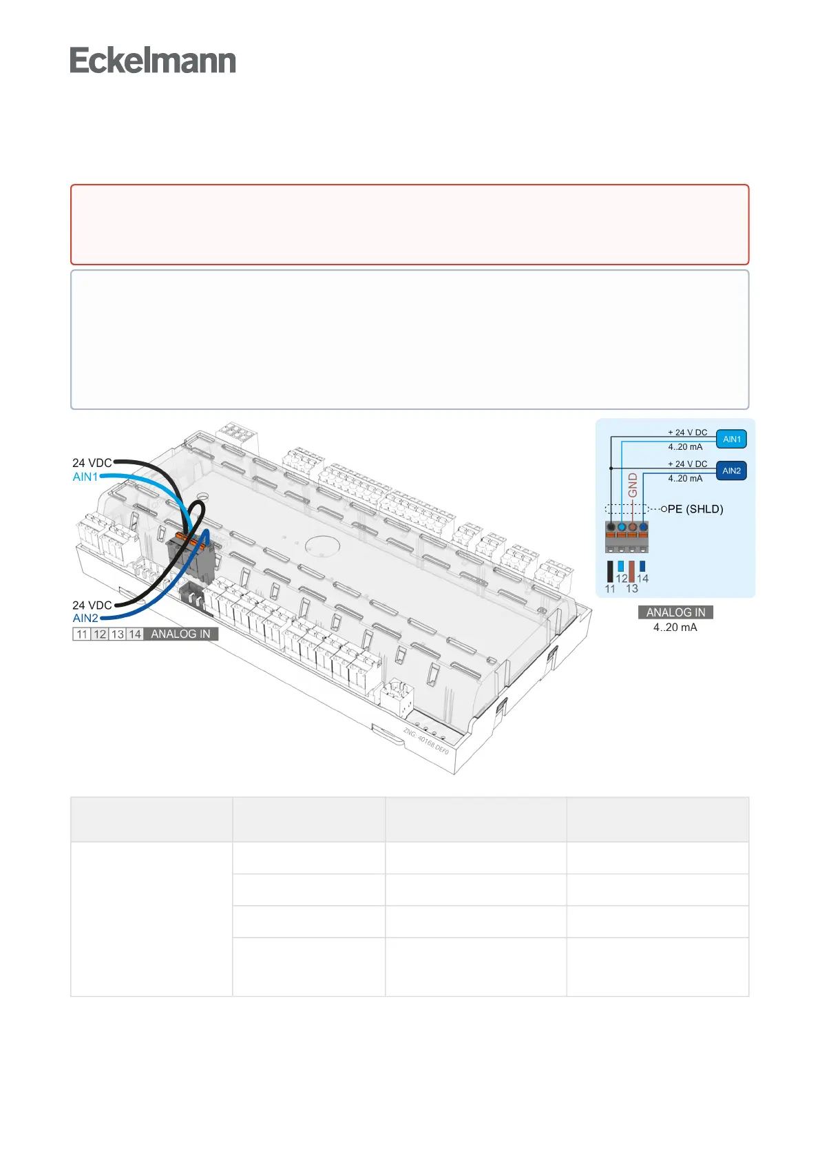 7.10 Terminal assignment of the 4..20 mA analogue inputs