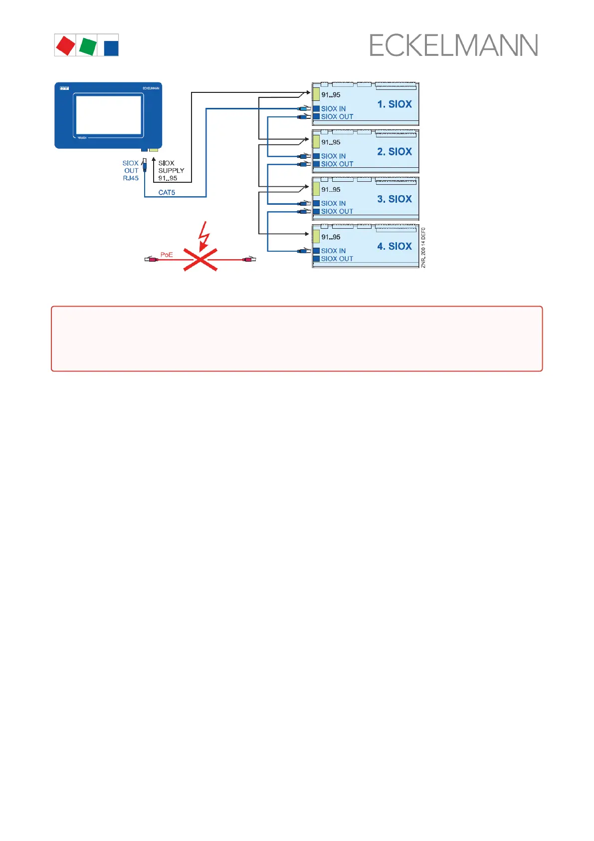(Power over Ethernet) being used instead of the SIOX data cable (RJ45) damage can occur to