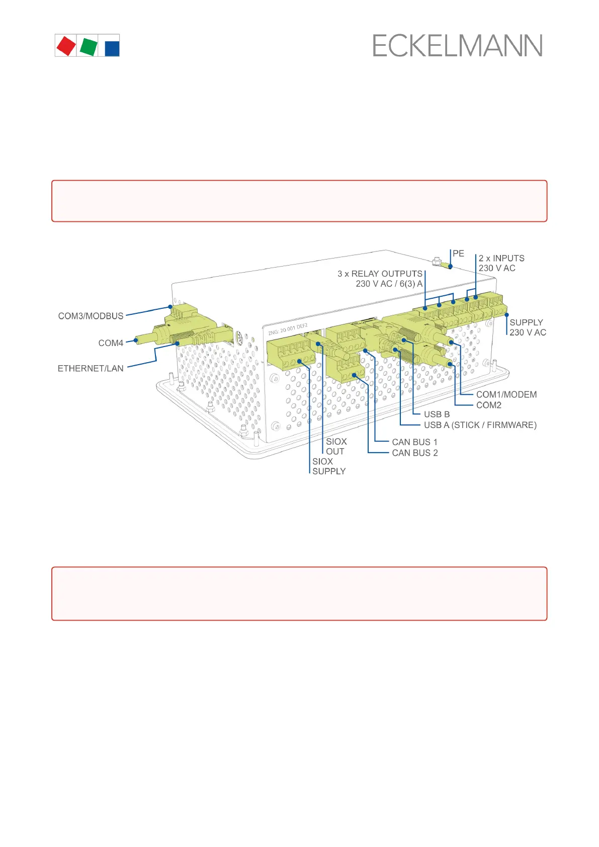 The connection is used for the power supply of the system centre and is located at the bottom on the device.
